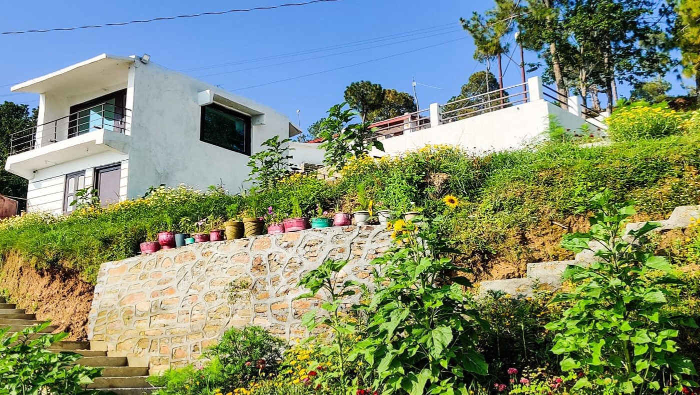 Geeta Cottage" a Pure Vegetarian place for stay with majestic view of Himalayas, lush Green Nature and Beautifully Natural Designed Landscape. Cottage offers the breathless view of Himalayas, Snowcapped Peaks and Peaceful Nature.